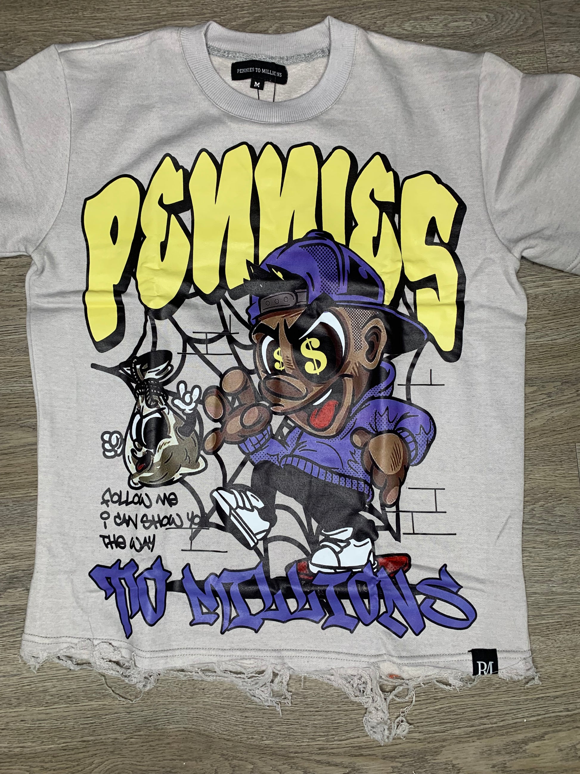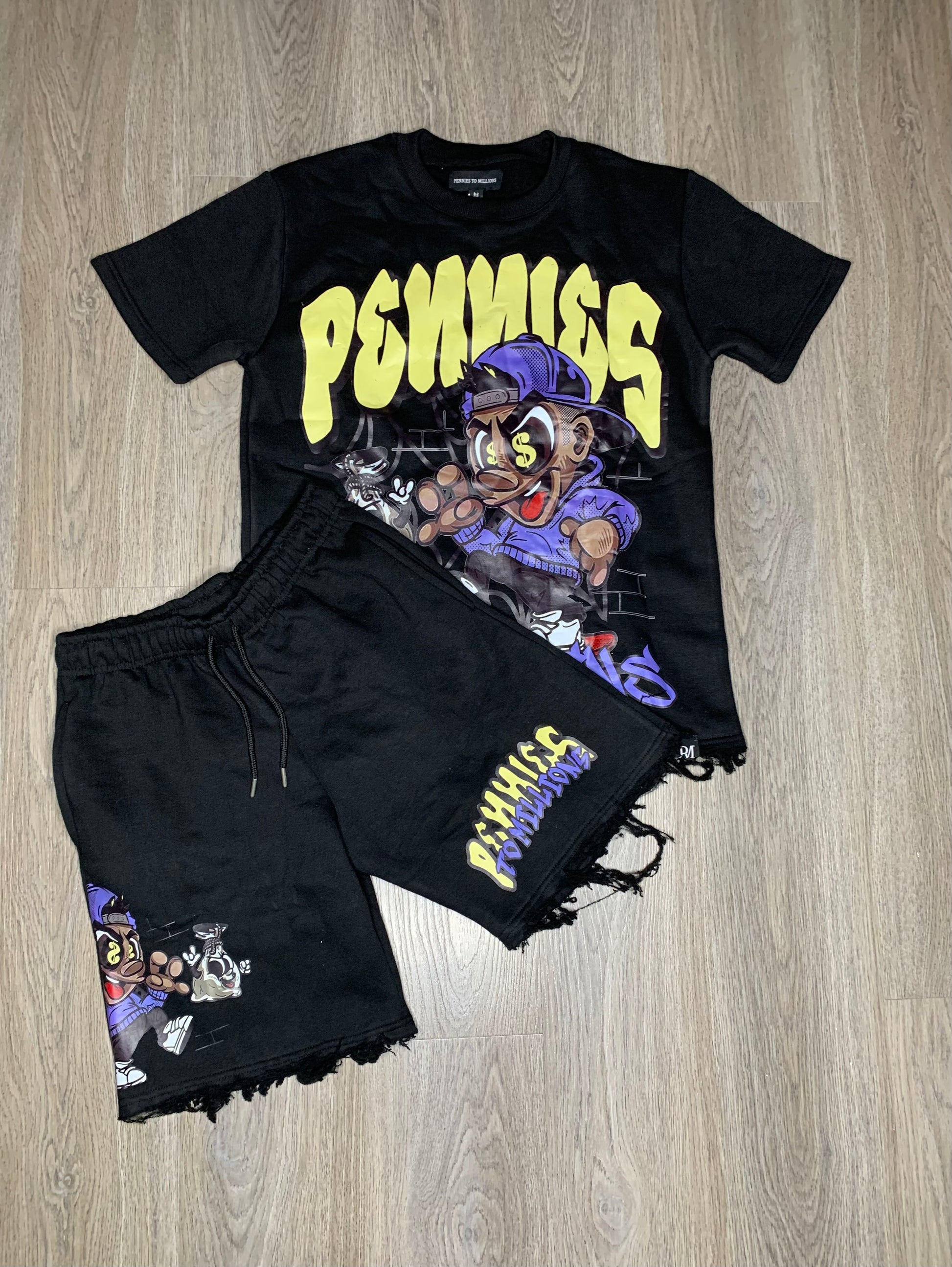 - “Follow Me I Can Show You The Way” Cartoon on shirt & shorts